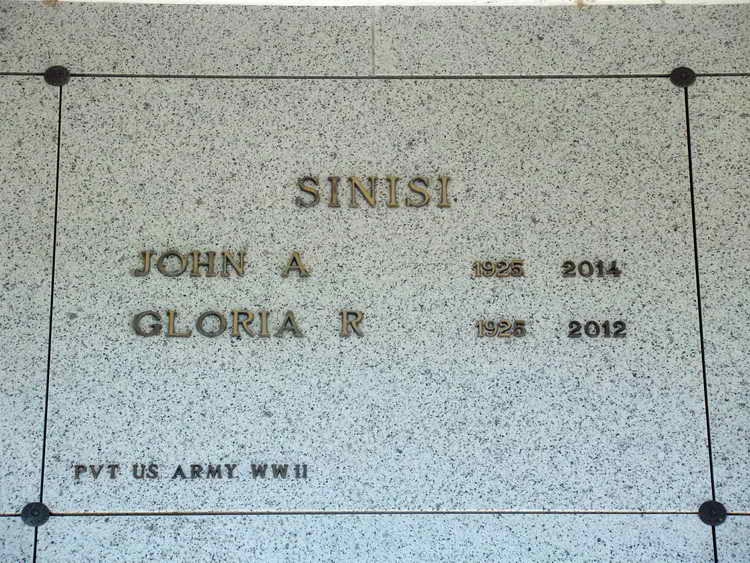 Crypt marker for John A. and Gloria Sinisi in Calvary