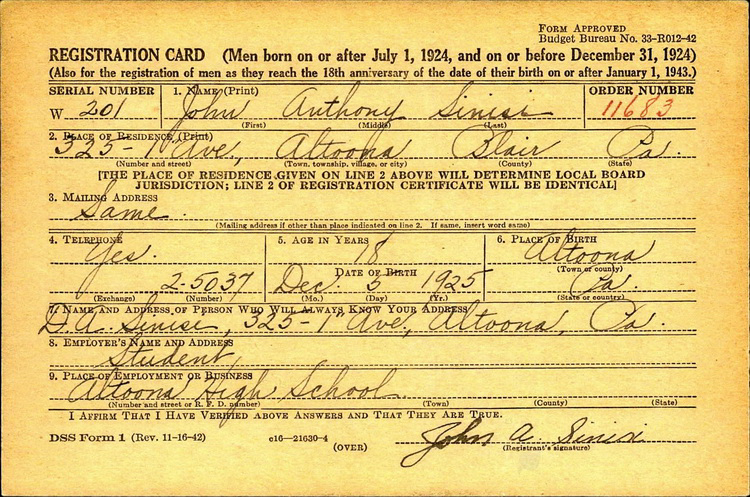 On 5 October 1945, Pfc Sinisi was transferred from the