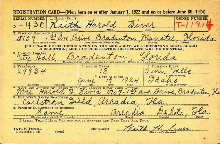 Draft registration record and grave marker for .Keith H.