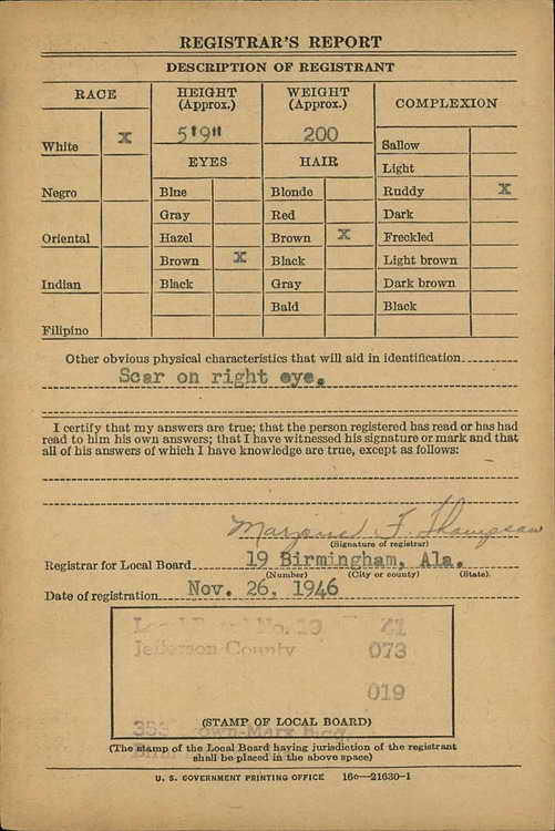 draft record in Birmingham. AL on 26 November 1946 to reflect that he was a