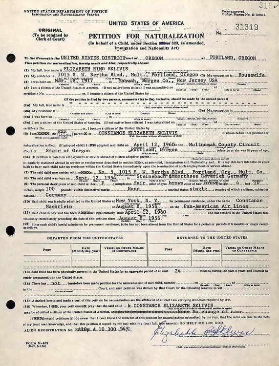 Then, on 8 March 1954, Constance became a naturalized U.S. citizen.