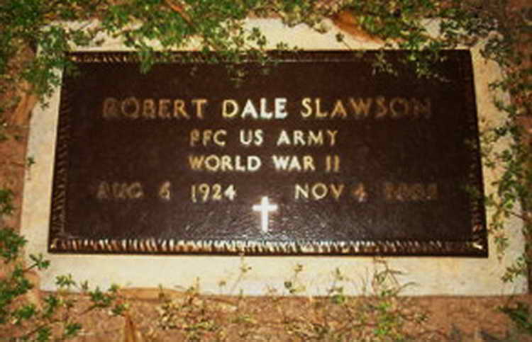 marker for Robert D. Slawson in the Magnolia Cemetery Bristow Creek County