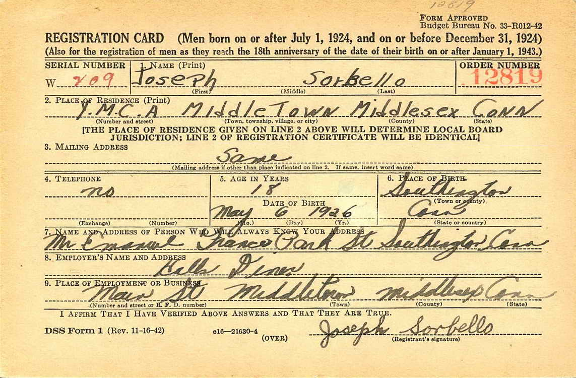 Joseph registered for the draft in Middletown,