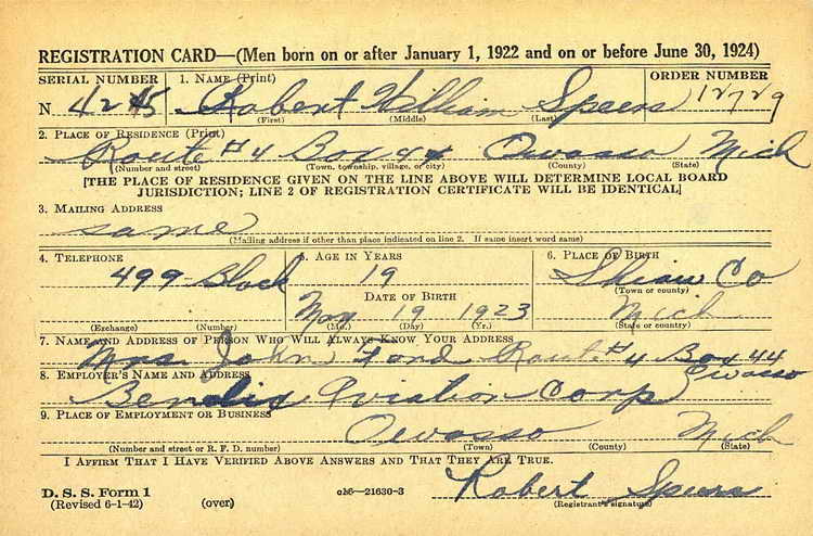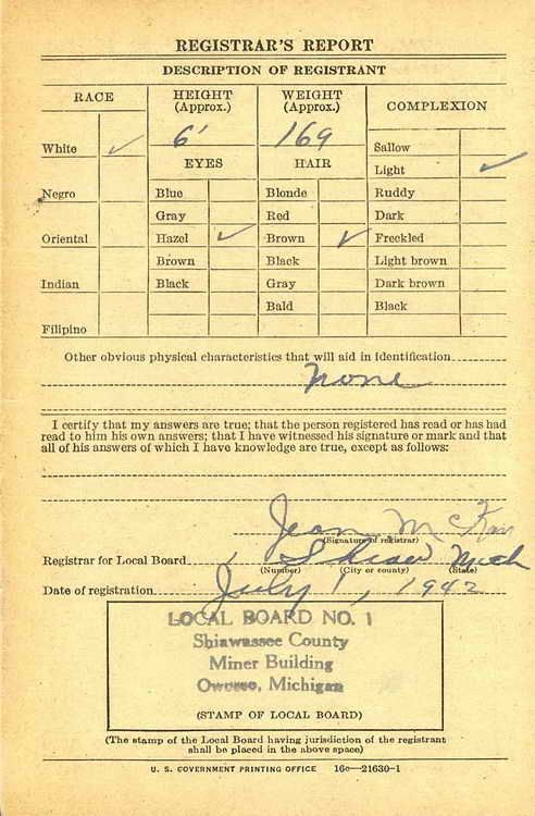 Bob registered for the draft in Owosso (Shiawassee