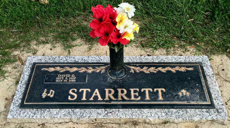 Grave marker for David C. Starrett in Resthaven Gardens of