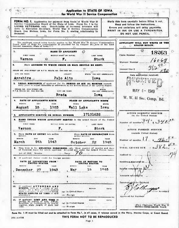 Iowa WWII Veterans Bonus award. He was credited with 34 months of