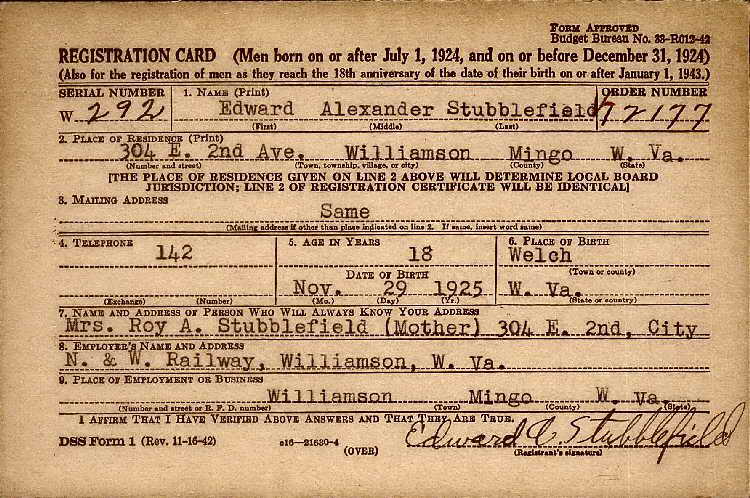 On 3 October 1944, Pvt Stubblefield was transferred from