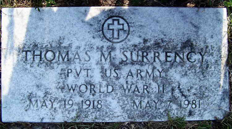 Grave marker for Thomas M. Surrency in the Ferreira Cemetery,