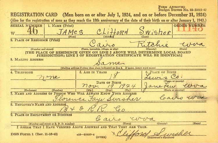 Harrisville, WV on 26 December 1942 and was inducted into the Army at