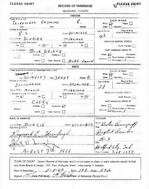 married Janet B. Swingley in Muncie, IN on 9 August 1955 after the