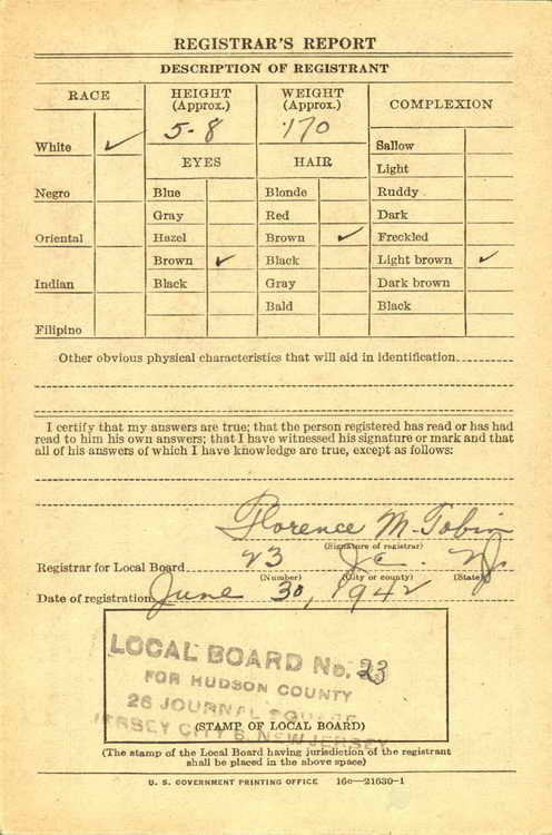 June 1942 and was inducted into the Army at Newark, NJ on 14 November 1942.