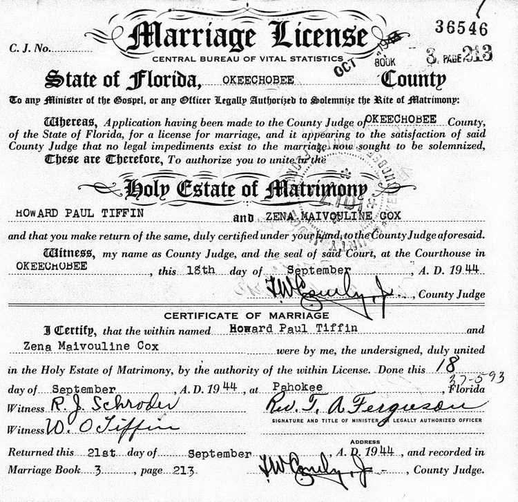 SSgt Tiffin married a Zena Marvouline Cox, a 17-year-old