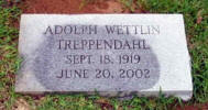 marker for Adolph W. Treppendahl in the Evergreen Cemetery, Woodville