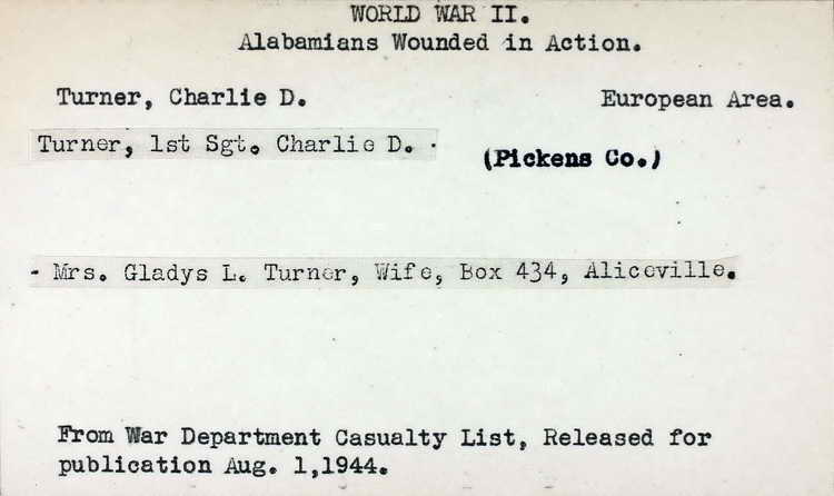 St Charlie D. Turner had been wounded in action. No indication of date