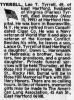 East Hartford, husband of Virginia (Farles) Tyrrell, died Monday (May 15. 1995) at Hartford Hospital.