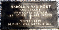 Grave marker for Harold A. Van Hout in Lafayette Memorial Park,