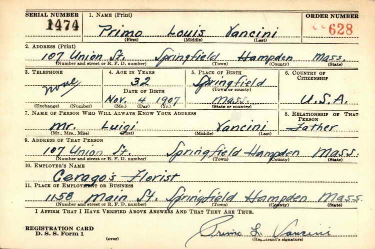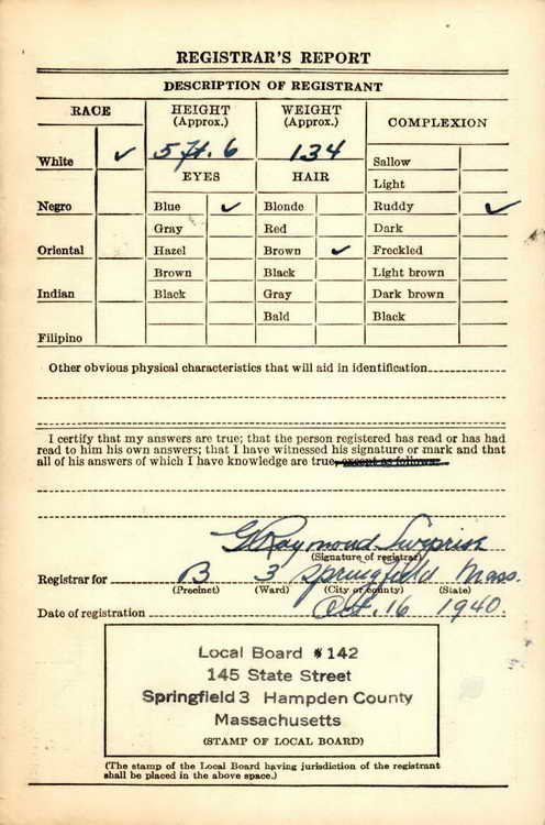 16 October 1940 and was inducted into the Army at Springfield, MA on 10