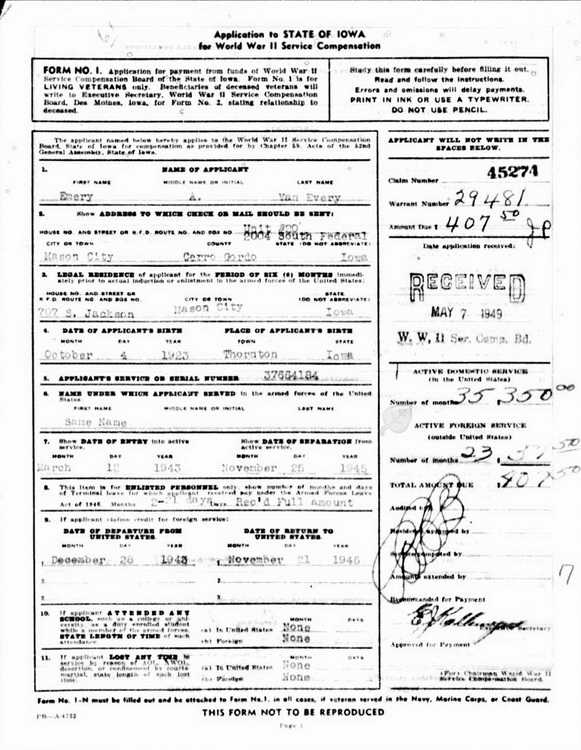 enlisted in the Army at Camp Dodge, Herrold, IA on 5 March 1943.