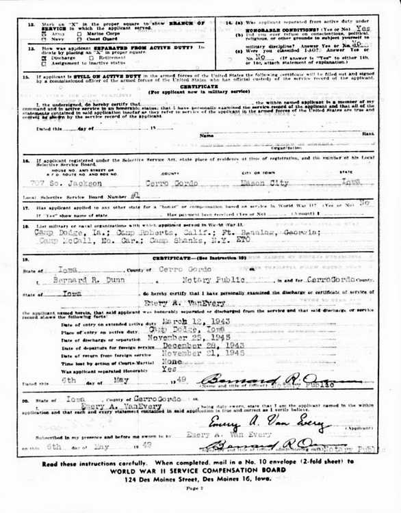 with Camp Dodge, IA, where he enlisted, followed by Camp Roberts, CA