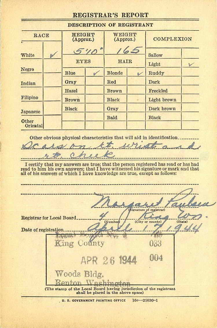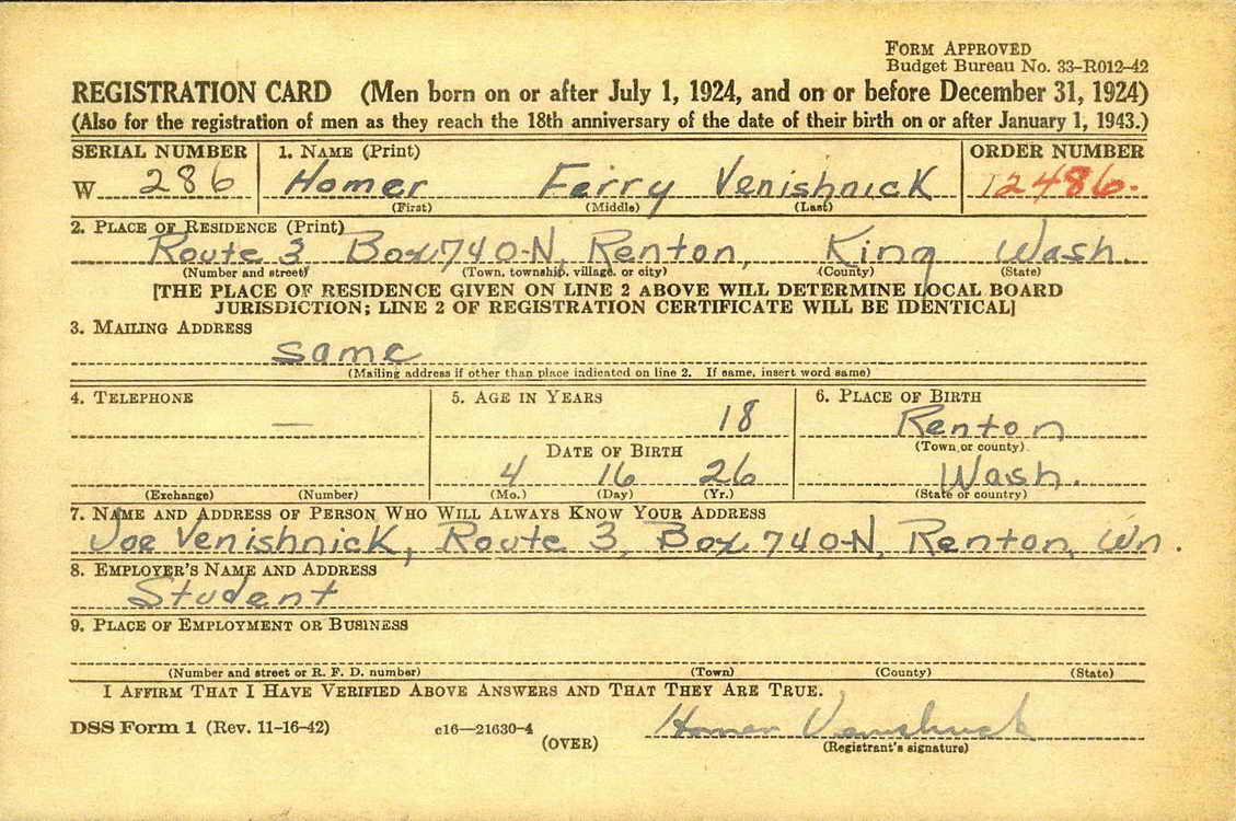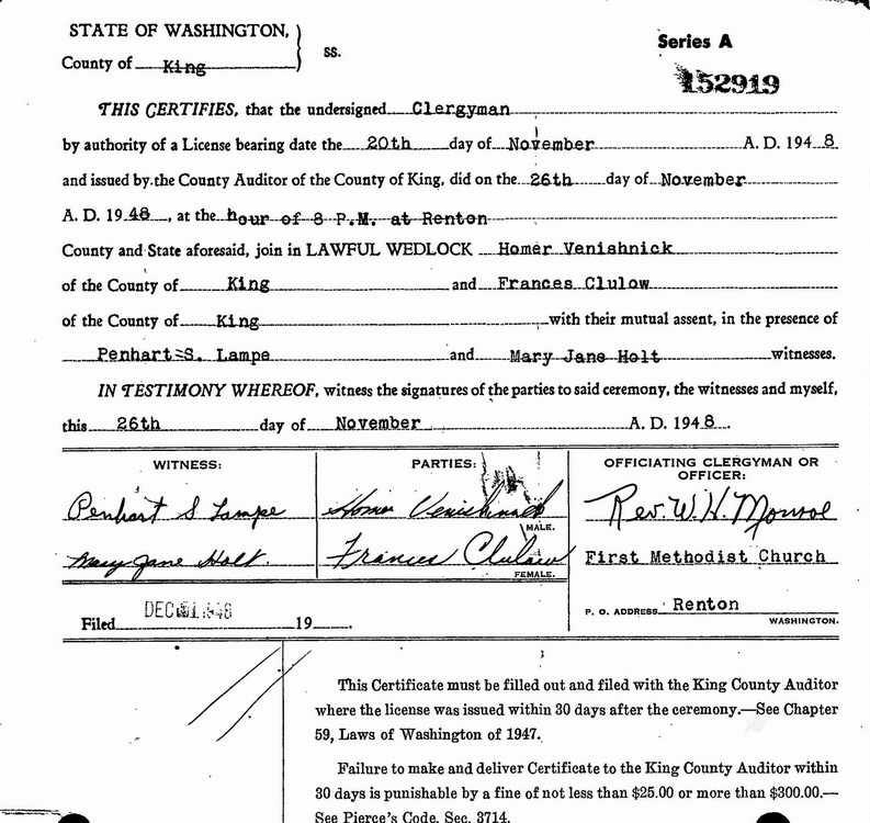his discharge, Homer returned to Renton where on 11/26 November 1948 he