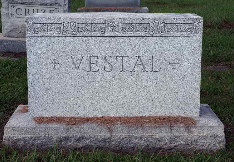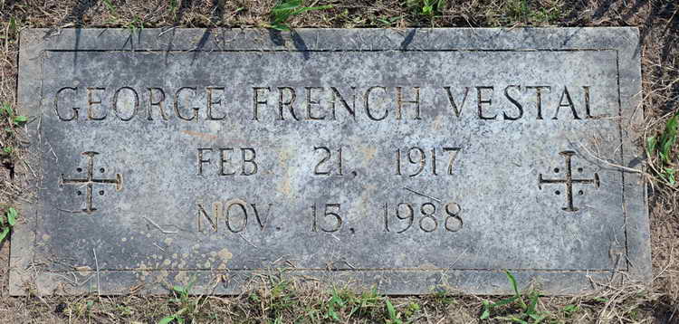 Grave marker for George F. Vestal in Woodlawn Cemetery,