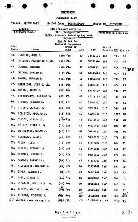 Airborne Division Hq to Company H, 508th PIR.