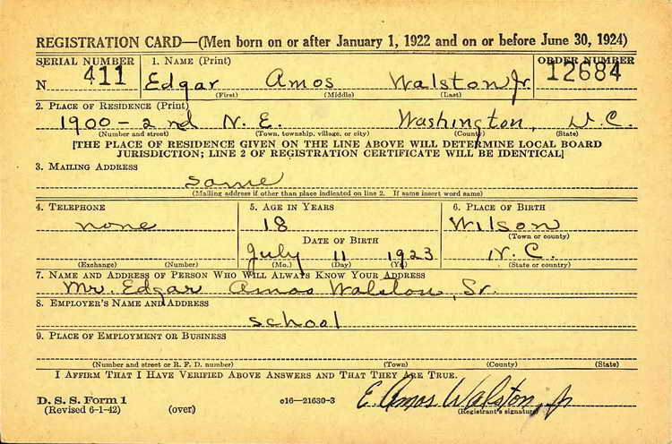 Edgar registered for the draft ca. 1941.