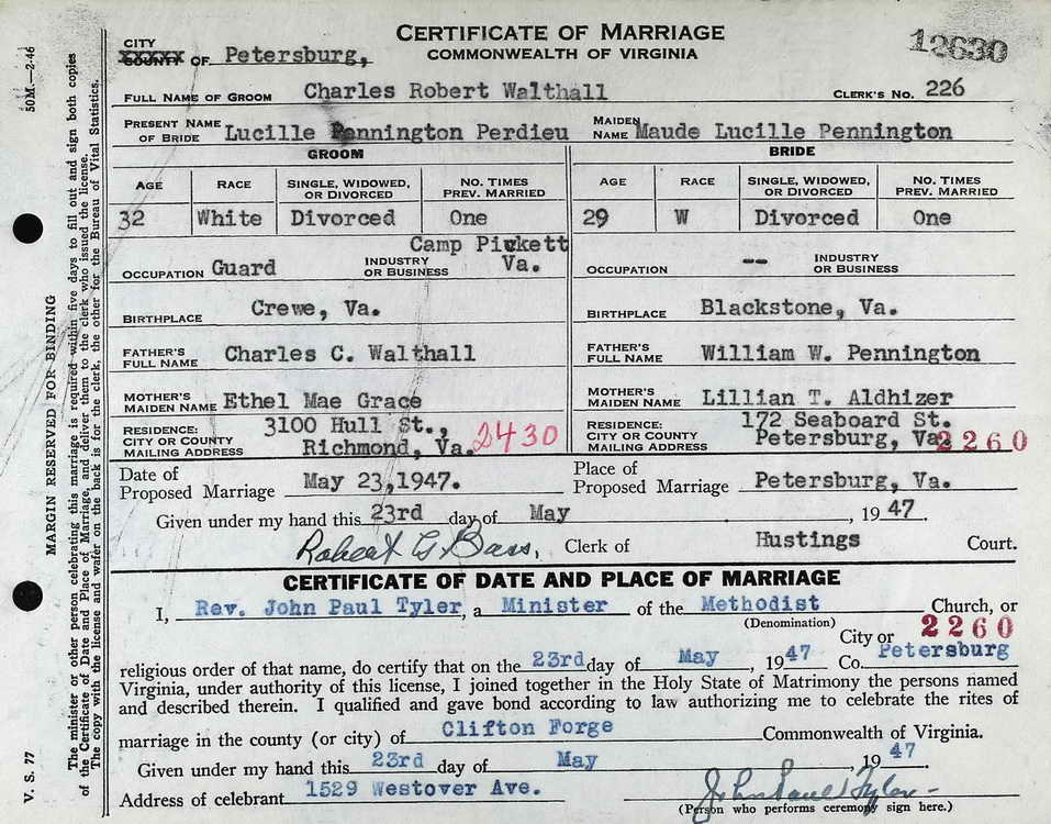 ended in a divorce. On 23 may 1947, he married Maude Lucille