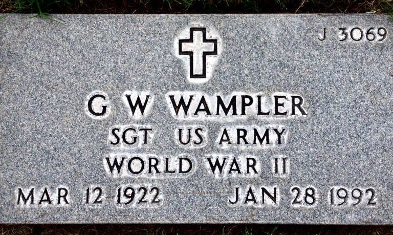 Grave marker for G. W. Wampler in Section J, Site 3069 of