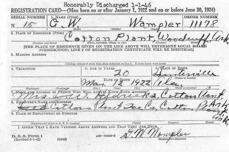 On 30 November 1942 Pvt Wampler was transferred from