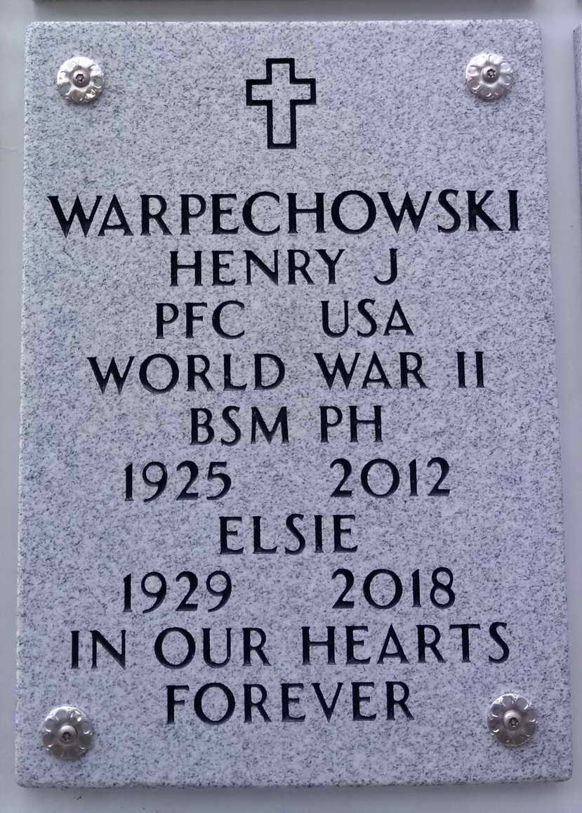 Columbarium marker for Henry J. Warpechowski and spouse in Section 2D,