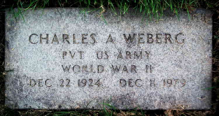 Grave marker for Charles A. Weberg in Plot P, I1 of