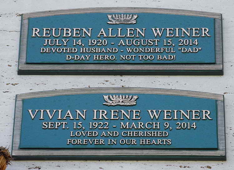 Crypt marker for Reuben A. Weiner and spouse in Hillside