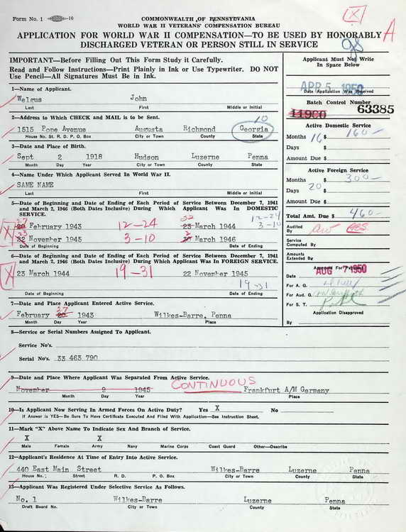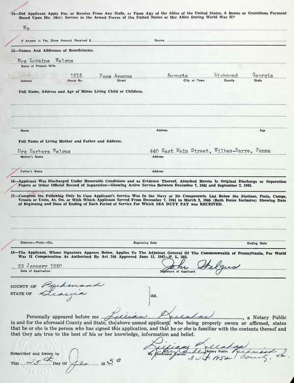 Mrs. Barbara Welgus, still his in his hometown of Wilkes Barre,