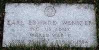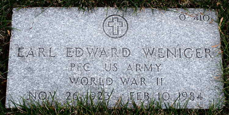 Grave marker for Earl E. Weniger in Plot O,