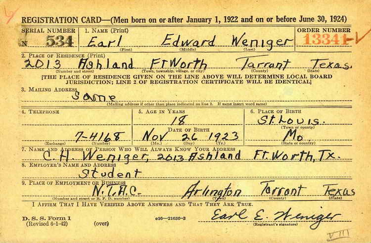 registered for the draft ca. 1941 while still a junior in high school.