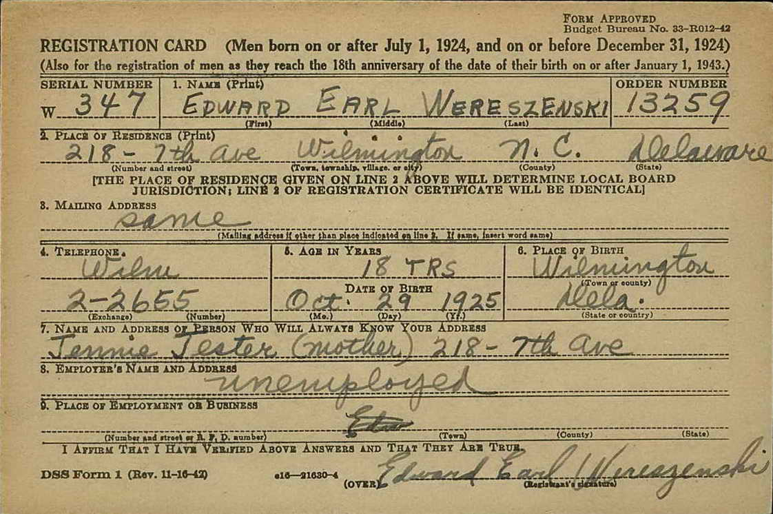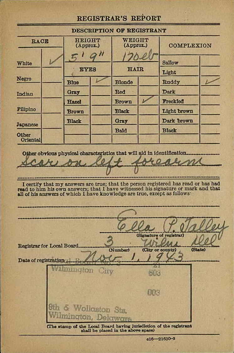 Wilmington, DE on 1 November 1943. He enlisted in the Army at Camden,