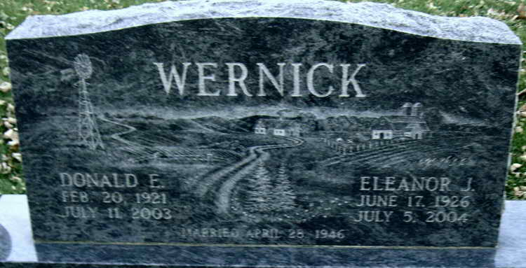 Grave marker for Donald E. Wernick in the Prairie Mound Cemetery,