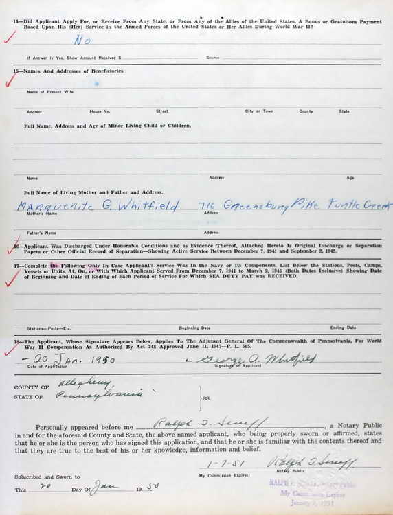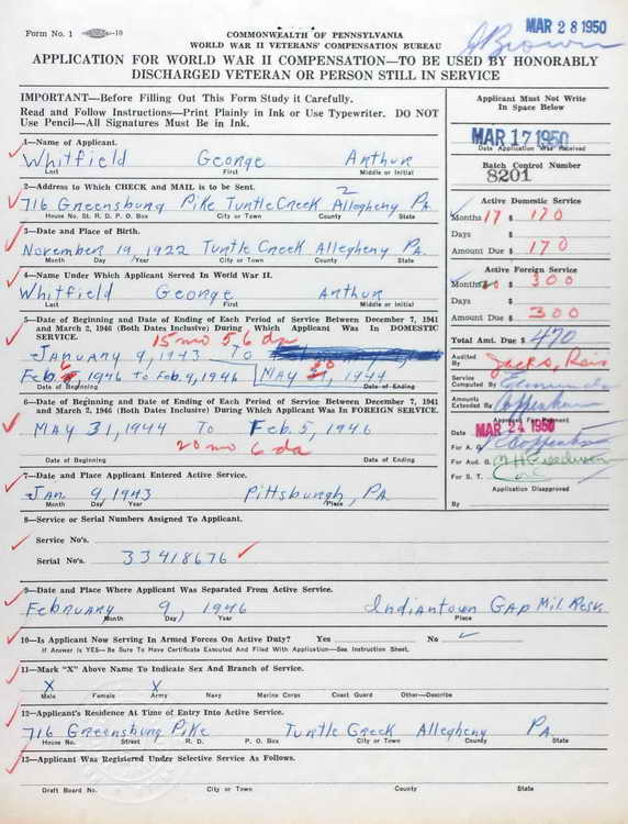Pennsylvania WWII Veterans Bonus program when he submitted this