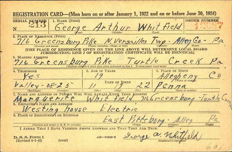 registered for the draft ca. 1941/42 and was inducted into the Army at