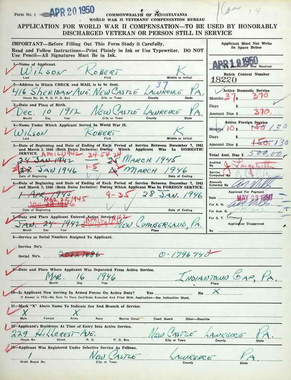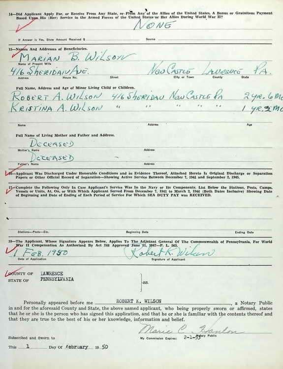 On 1 February 1950 Robert submitted the above Pennsylvania WWII Veterans