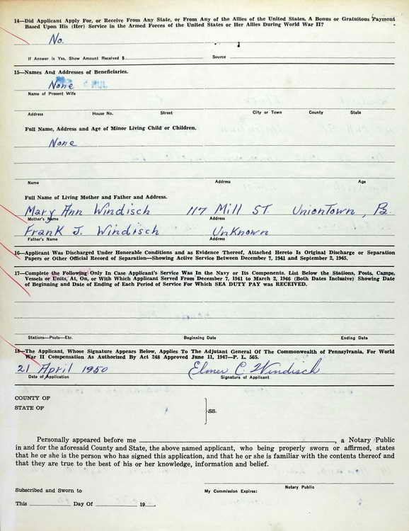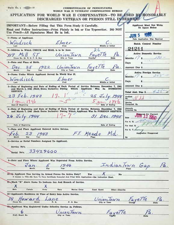 PA WWII Veterans Bonus. He was credited with 17 months of domestic