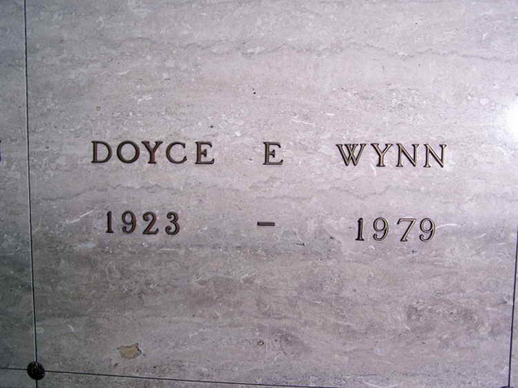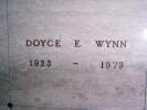 Crypt marker for Doyce E. Wynn in the