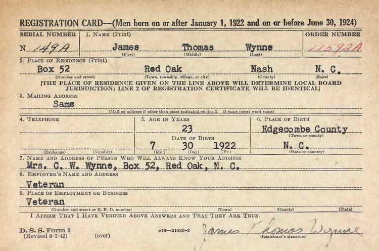 After the war concluded, the Draft Board updated James' record to
