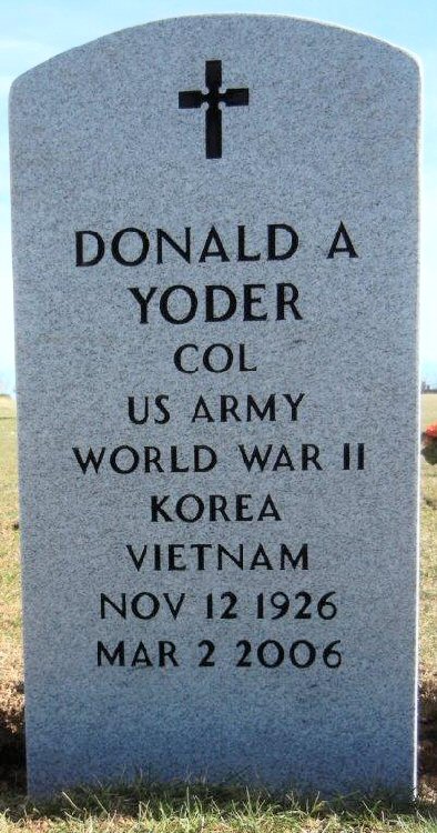 Don was born on November 12, 1926 in Junction City, Kansas to the late Frank and Bess Yoder. He graduated from Wichita East High School in 1944. After graduation, he enlisted in the United States Army. He was honorably discharged in 1946 with the rank of Corporal.