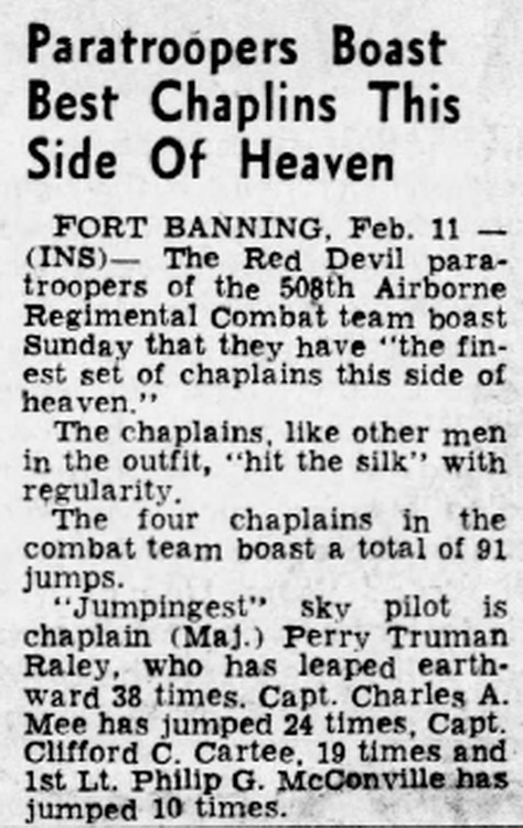 "Jumpingest" sky pilot is chaplain (Maj.) Perry Truman Raley, who