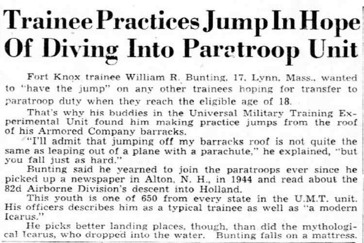 parachute-jumping is gained by William R. Bunting, Fort Knox