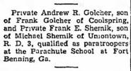 Pvt Andrew R. Golcher, son of Frank Golcher if