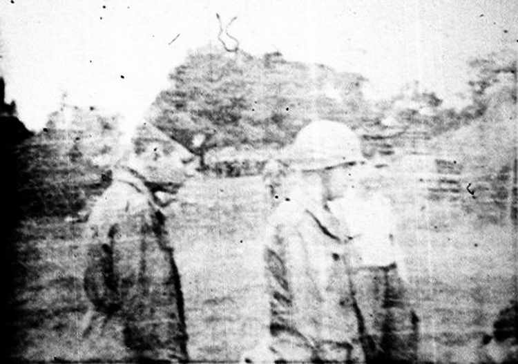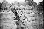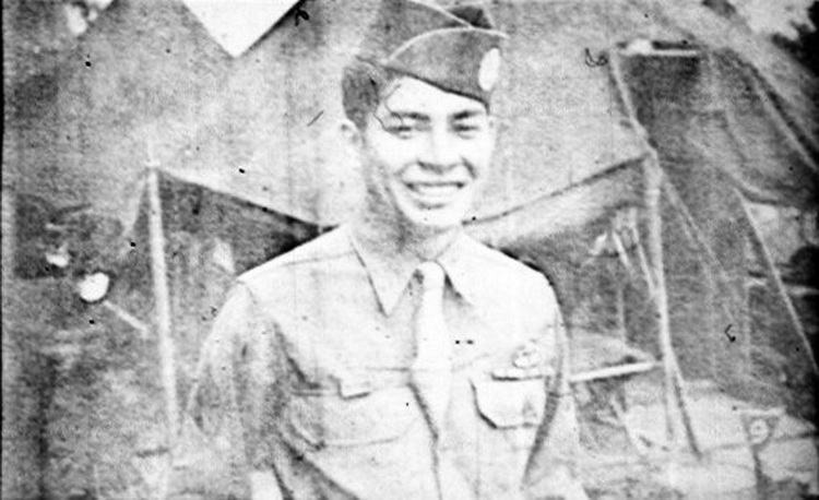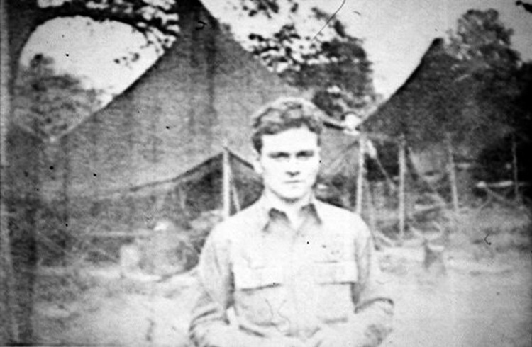 Lt. Harold W. Martin scrutinizes an unidentified man's uniform