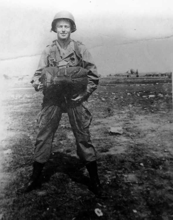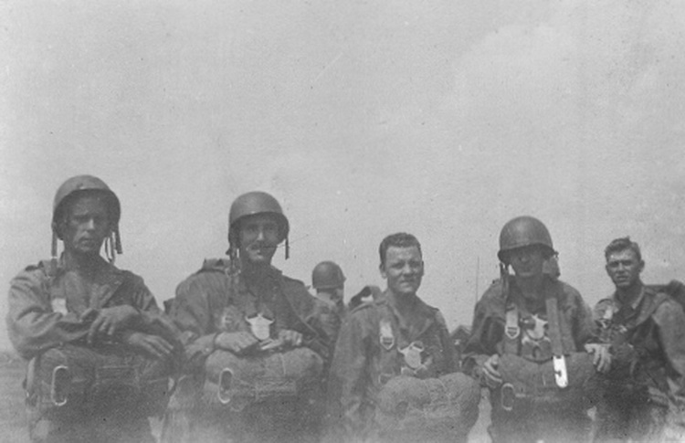 "Me and a few of my boys after our last jump July, 1945 in